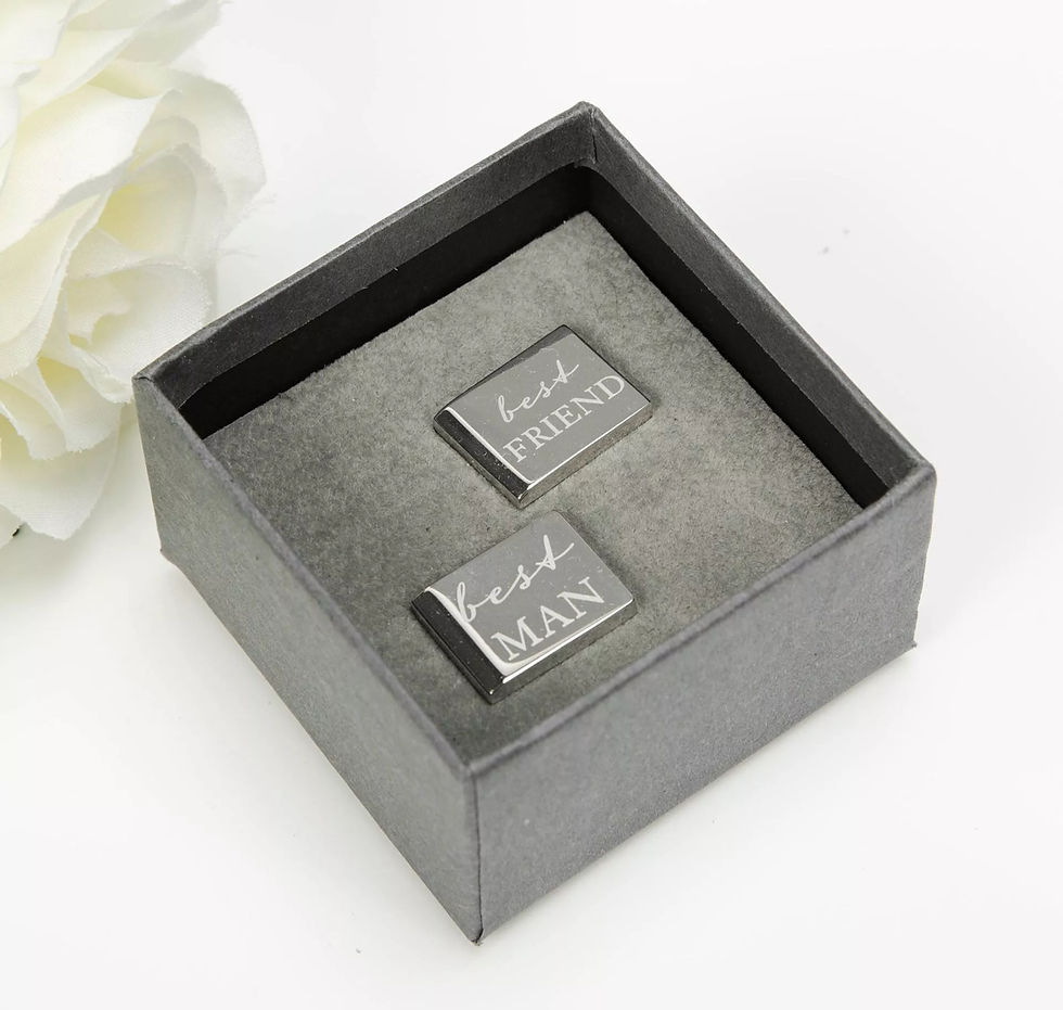 Mr & Mrs Black Engraved Cufflinks "Best Man"